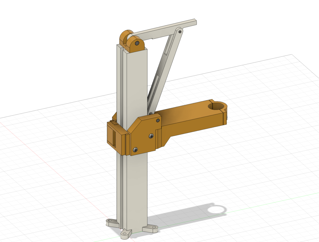 Prior to the current design and final print, there were two other designs made and considered. The main differences of the two where the lever to control the motion and the design of the components for the assembly. The first version utilized the lever mechanism but had too many separate components that when fully assembled altered the desired precision of the press. The second version did not include the lever, but each parts purpose was more carefully considered for assembly. For the third and current design the lever mechanism was re-adopted along with the new designs of the components.